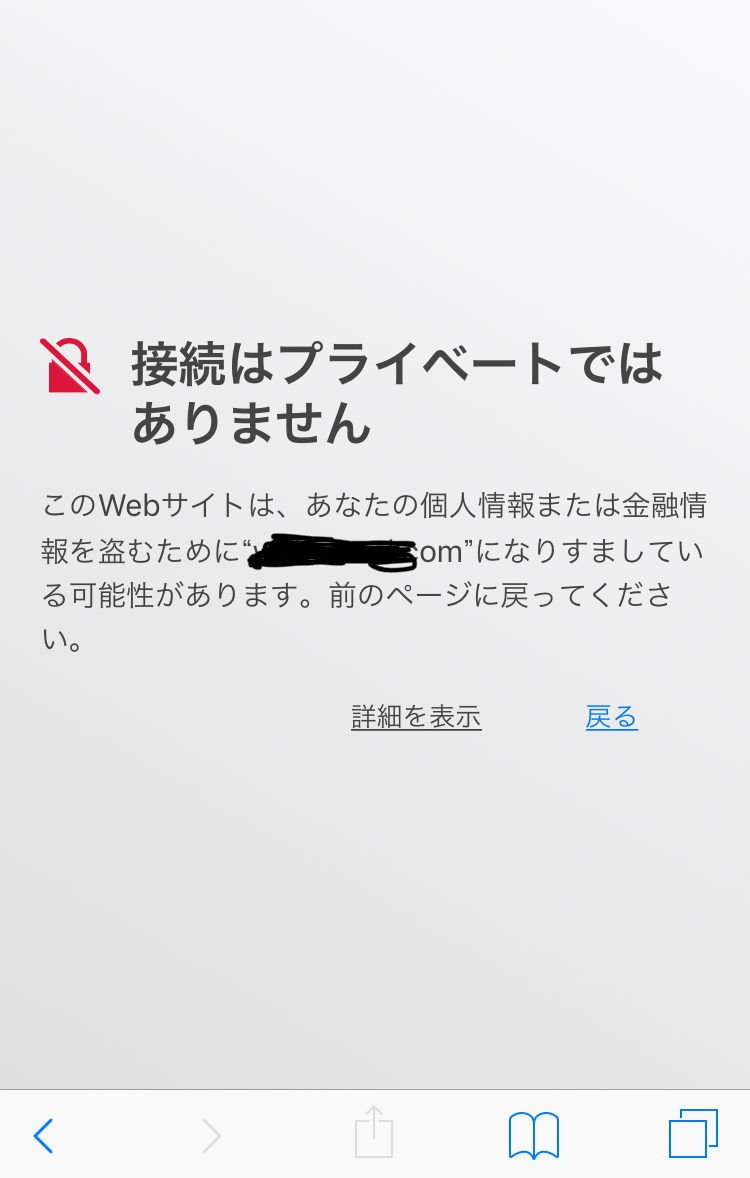 ブラウザの警告画面を添付します。