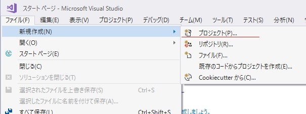 [ファイル(F)] - [新規作成(N)] - [プロジェクト(P)]