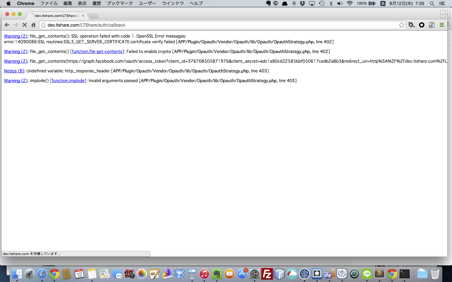 現在facebookでのログイン機能を実装しようとしており、苦戦しているため、質問させていただきます。