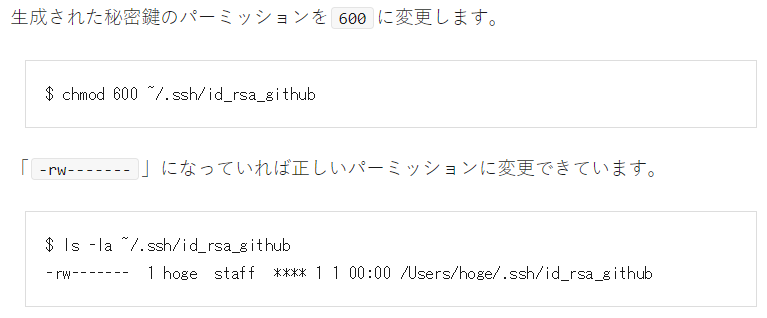 「生成された秘密鍵のパーミッションを600に変更します。」