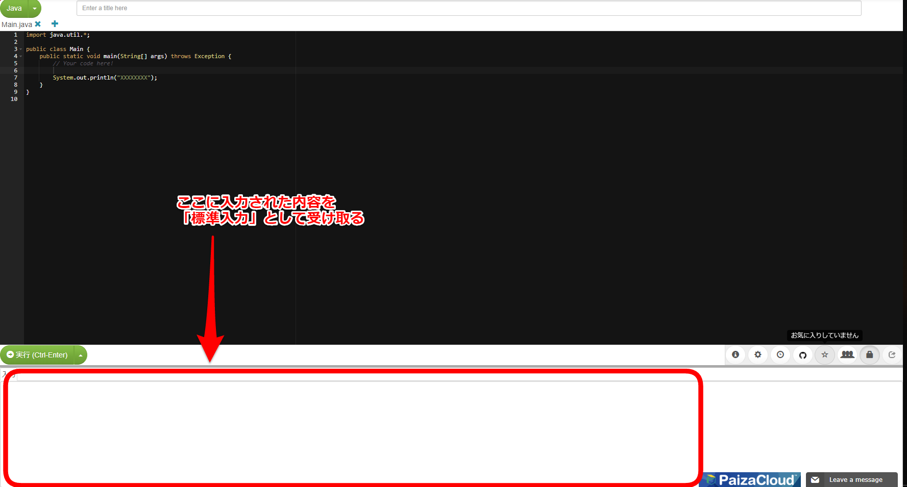 paiza.ioを使用しているのですが、「入力された文字列をそのまま出力する」という処理を行おうとしています。