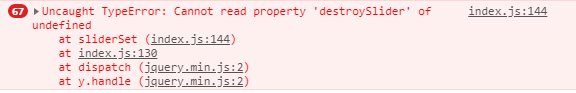 destroySliderが実行されていないのが原因なのは分かっているのですが、