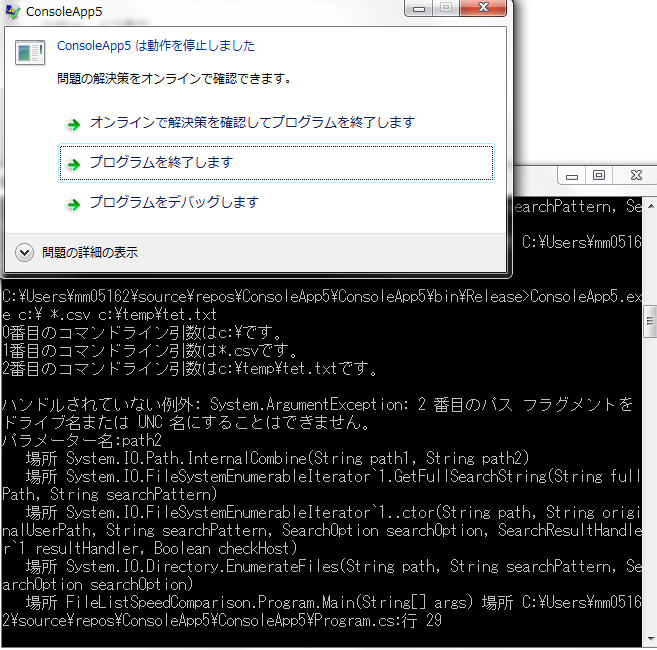 {"2 番目のパス フラグメントを ドライブ名または UNC 名にすることはできません。\r\nパラメーター名:path2"}