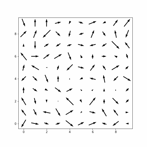 このようになってしまいます.どうすればベクトルの時間変化がgifのようなアニメーションとして出力されるのでしょうか?