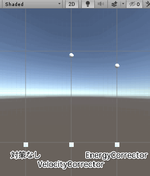 1using UnityEngine; 2 3public class VelocityCorrector : MonoBehaviour 4{ 5 private new Rigidbody rigidbody; 6 private Vector3 previousVelocity; 7 8 private void Awake() 9 { 10 this.rigidbody = this.GetComponent<Rigidbody>(); 11 12 // 初速度をセットする 13 // たとえば初期位置からさらに10m上まで飛ばす場合... 14 this.rigidbody.velocity = -Physics.gravity.normalized * Mathf.Sqrt(10.0f * 2.0f * Physics.gravity.magnitude); 15 } 16 17 private void FixedUpdate() 18 { 19 // FixedUpdate時点の速度を常にキャッシュしておき... 20 this.previousVelocity = this.rigidbody.velocity; 21 } 22 23 private void OnCollisionEnter(Collision _) 24 { 25 // 衝突直後において、速度の大きさは衝突直前よりも大きくなっているので 26 // 衝突直前の速度と同じ大きさにむりやり矯正する 27 this.rigidbody.velocity = this.previousVelocity.magnitude * this.rigidbody.velocity.normalized; 28 } 29}