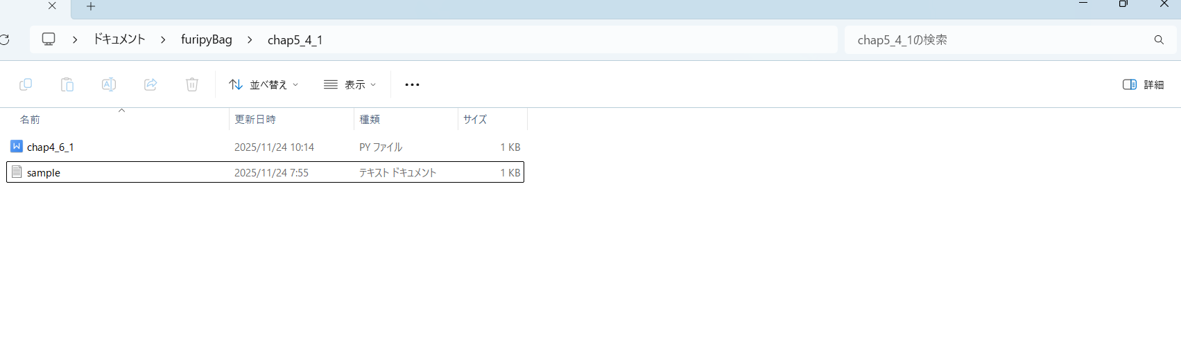 rfile = Path(r"C:\Users\nojiri hiromu\Documents\furipyBag\chap5_4_1\sample.txt")