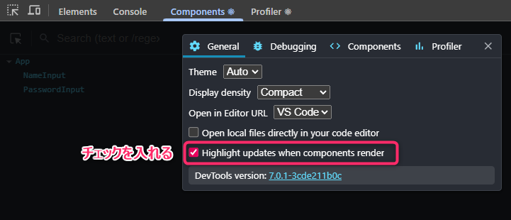 Reactのコンポーネントの再レンダリングが発生しているかは React Developer Tools を利用して視覚的に確認しています。