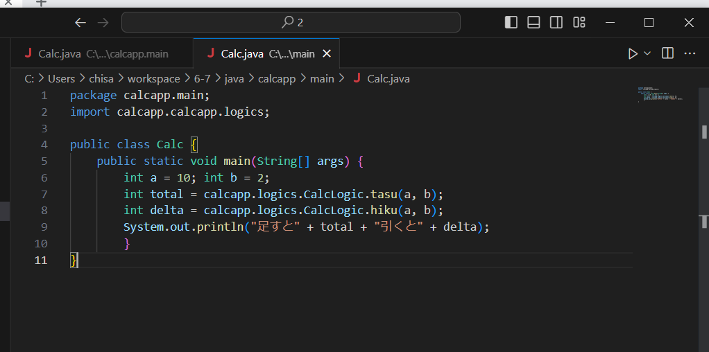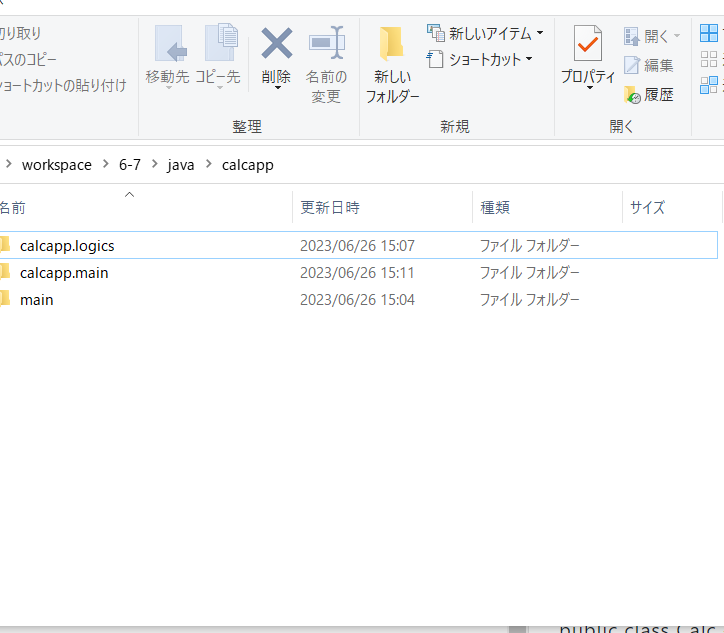 [workspase]→[6-7]→[java]→[calcapp]→[calcapp.logics][calcapp.main][main]