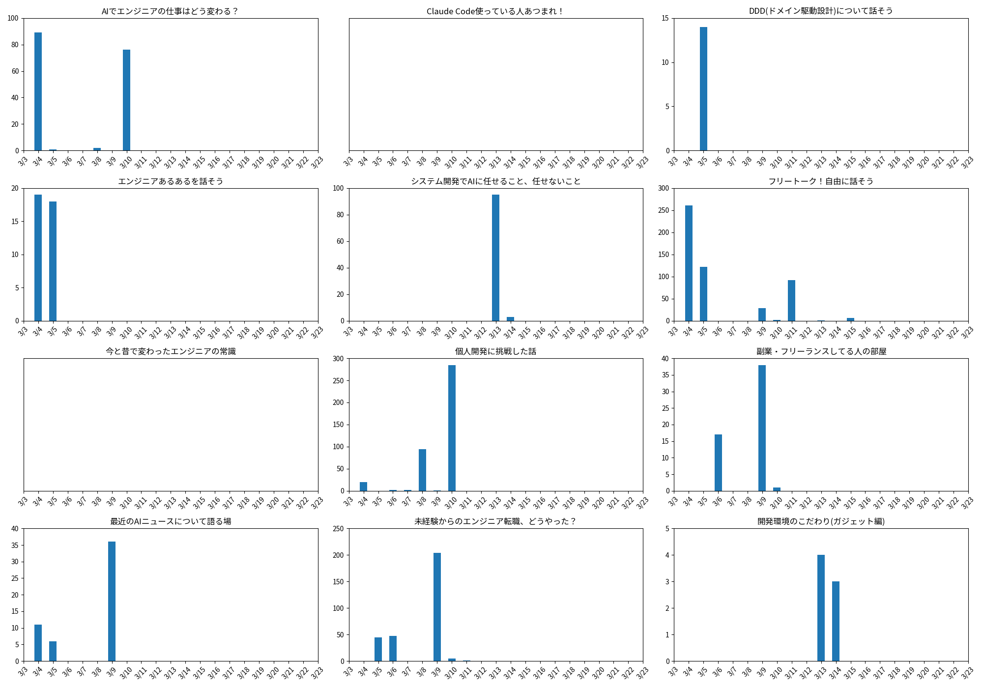 ※ 「Claude Code使っている人あつまれ!」と「今と昔で変わったエンジニアの常識」は投稿がありません