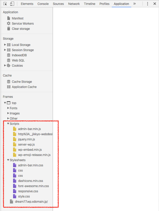 自作jqueryファイル(jquery.test.js)をデベロッパーツルーで確認してもうまく読み込まれていないためか、ファイル自体確認できませんでした。