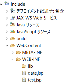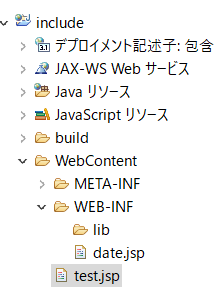 1<%@ page contentType="text/html; charset=Shift_JIS" %> 2 3<html> 4 <head> 5 <title>JSPサンプル</title> 6 </head> 7 <body> 8 こんにちは、今の日時は <jsp:include page="date.jsp"/> です。 9 </body> 10</html>
