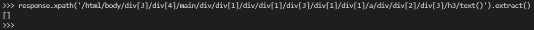 1response.xpath('/html/body/div[3]/div[4]/main/div/div[1]/div/div[1]/div[3]/div[1]/div[1]/a/div/div[2]/div[3]/h3/').extract()