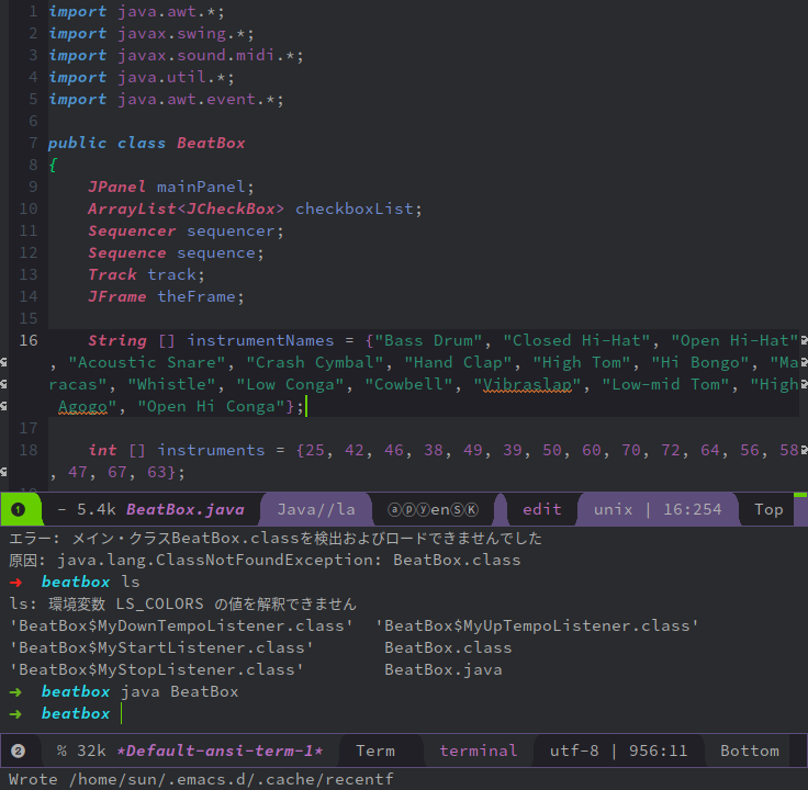 トピック的にもネットワークプログラミングやサーバー・クライアントモデル辺りまで話が行くんで、やっぱ下手な国産「Java入門」よりイイんじゃないか。僕はそっちはまだ試してないんだけど、「ドラムマシン」も最終的にはサーバー・クライアントモデルにブラシアップしよう、と言う辺りが最終ネタになってる模様だ。
