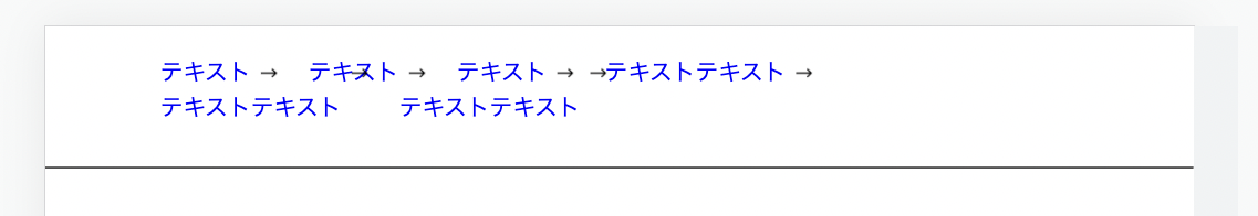 【画面幅を狭めて改行が入ると矢印の位置がおかしくなっている状態】