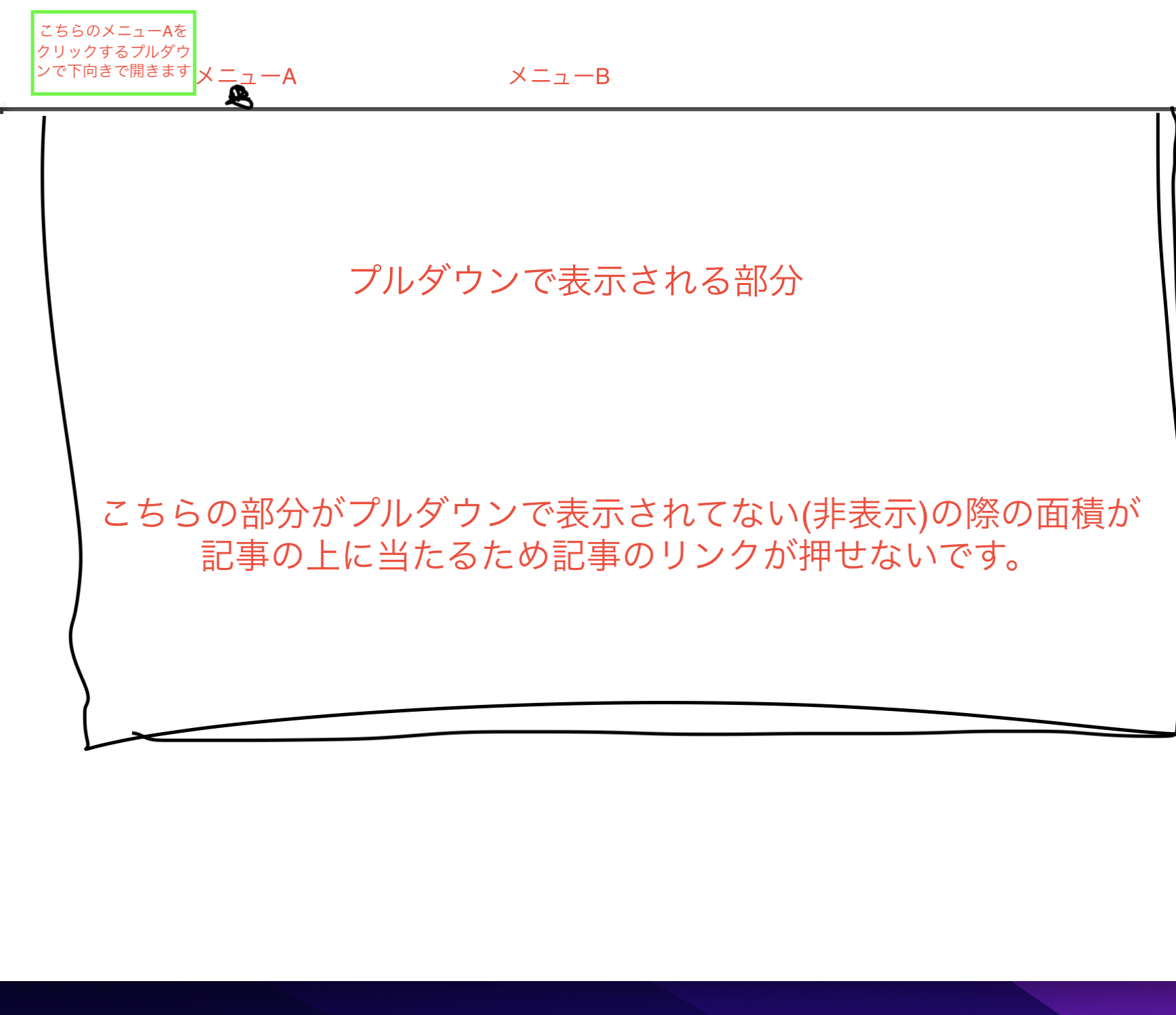 Webサイトのheaderにheader.phpをiframeで読み込んでいるため、プルダウンをクリックしてないのにサイトのbodyにある記事のリンクを押せない問題が起きています。
