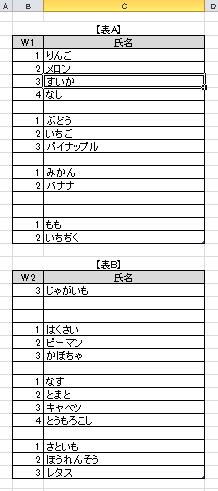 【表B】の最初の行3を1と表示させるにはどうしたらいいですか?