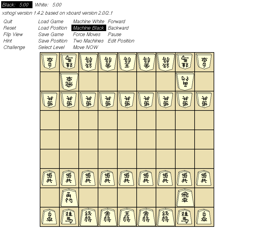 後香,後桂,後銀,後金,後王,後金,後銀,後桂,後香, ,後飛,,,,,,後角,, 後歩,後歩,後歩,後歩,後歩,後歩,後歩,後歩,後歩, ,,,,,,,,, ,,,,,,,,, ,,,,,,,,, 先歩,先歩,先歩,先歩,先歩,先歩,先歩,先歩,先歩, ,先角,,,,,,先飛,, 先香,先桂,先銀,先金,先王,先金,先銀,先桂,先香,
