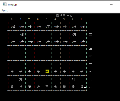 以下のソースから将棋のプログラムを作成しています。makeを実行後、画像のように、