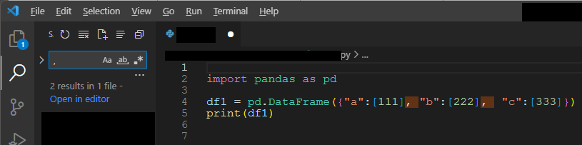 上の写真の1行目のように", "(半角カンマの後に半角スペース)と入力するとオレンジ色の透明な四角で色付けされるようになりました。