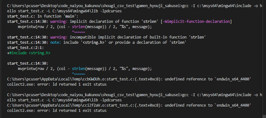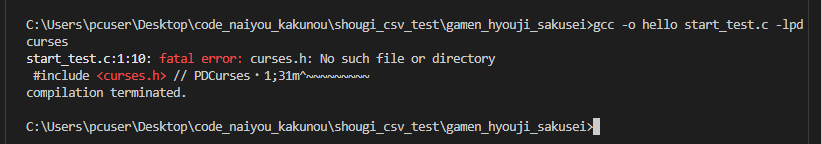 visualstdiocodeのgccの環境で、cursesを使用したいです。
